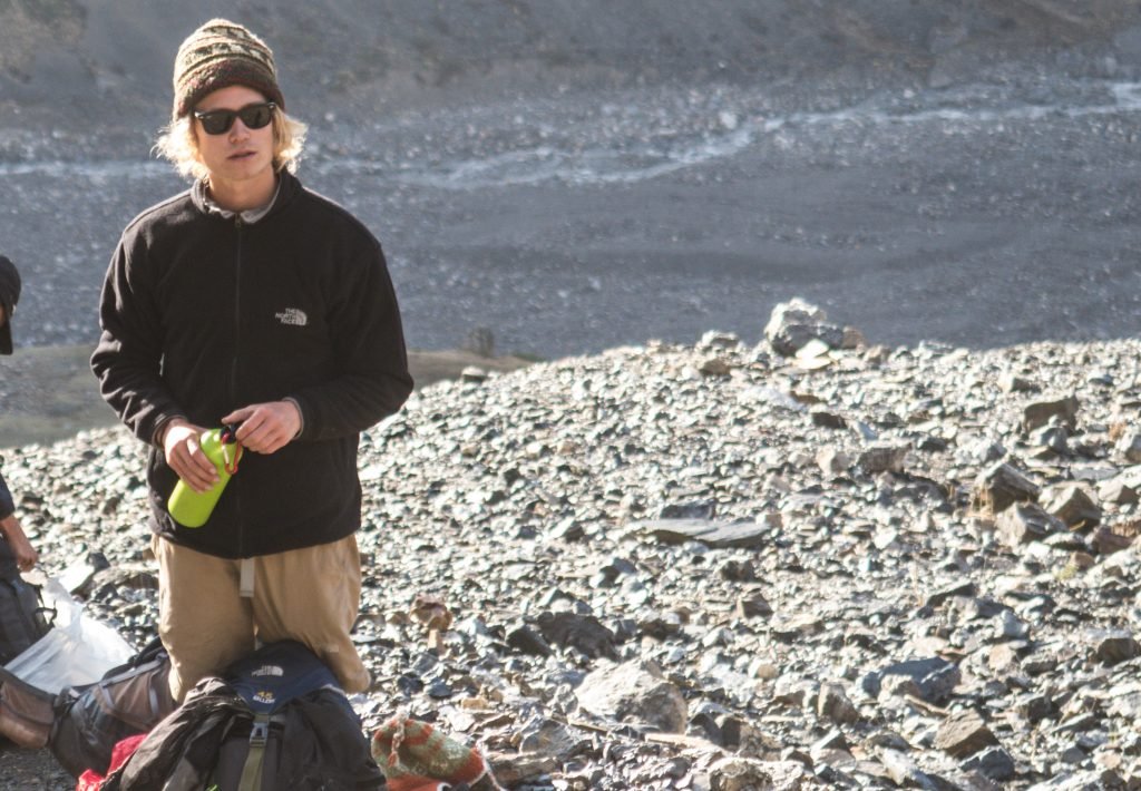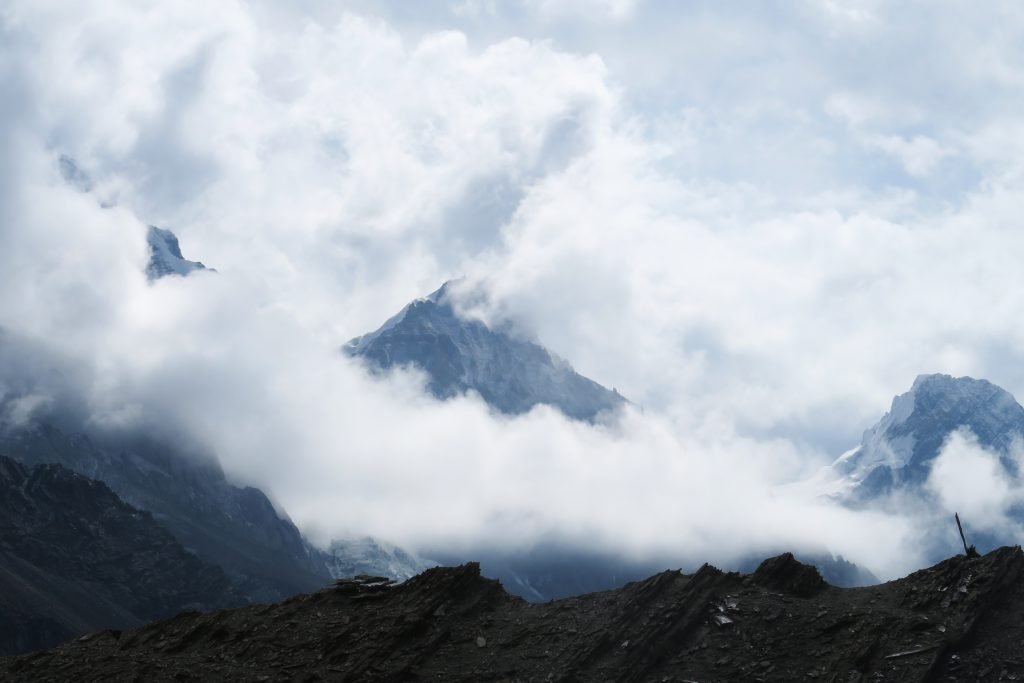 Légèrement au-dessus du High camp aux alentours de 5000m, après déjà 2 longues heures de marche, je vis une falaise qui surplombait l’ensemble de la vallée.