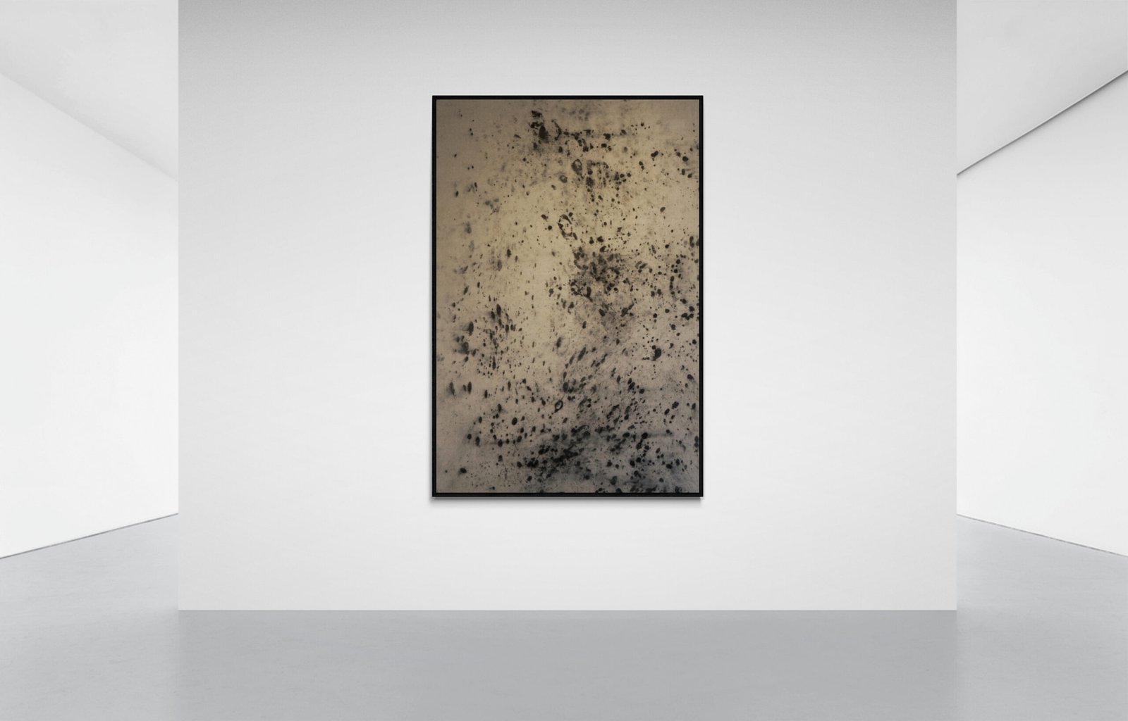 La chute de l’encre et l’aspect du sol forment l’empreinte de cette terre verticale qui capte de la montagne son vertige et sa chute, son temps géologique et son espace sans limite.