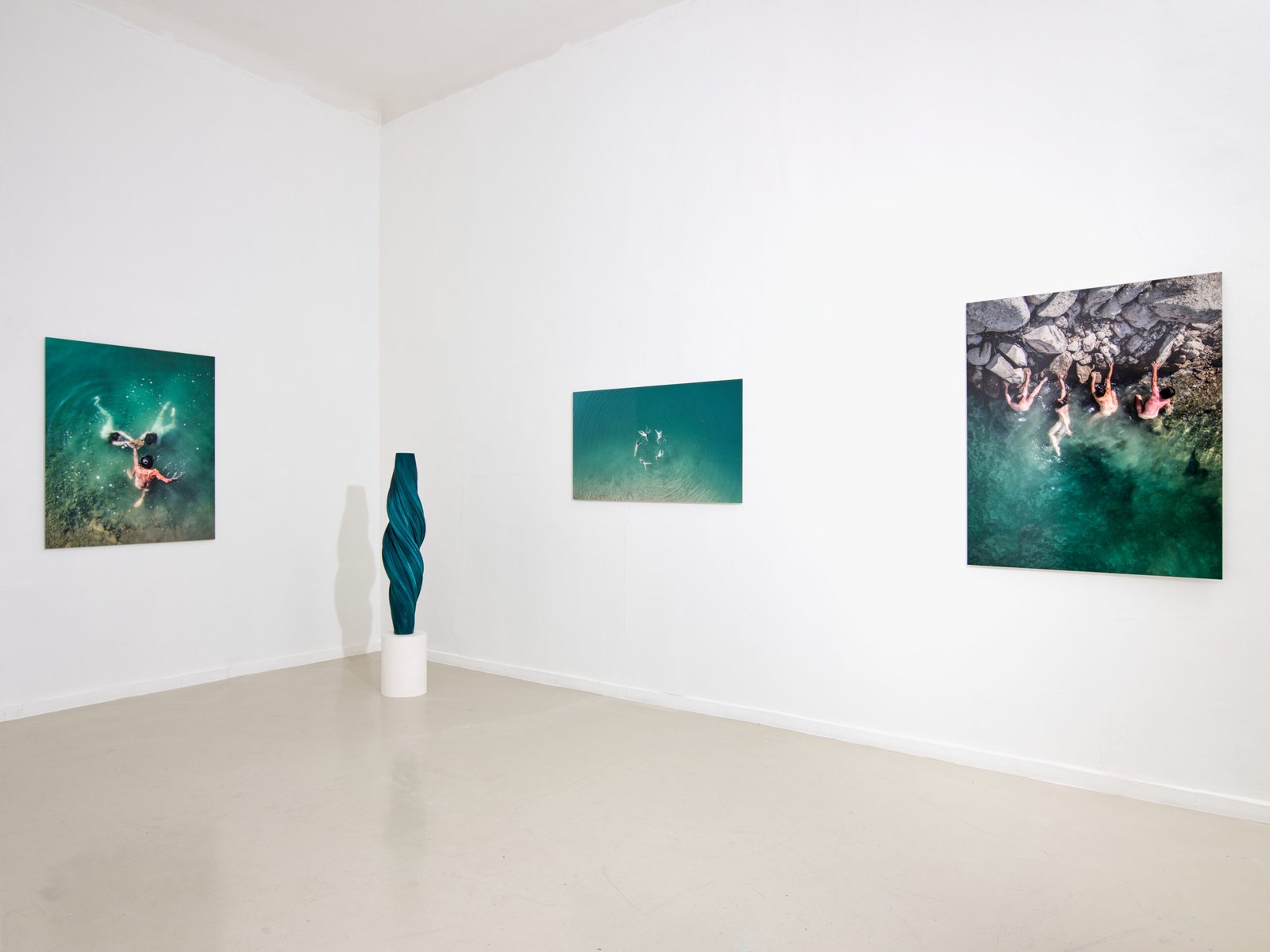 Les univers aquatiques mis en scène par Barbagli nous renvoient à des états et des formes primordiales – le liquide amniotique, le cercle, dans lequel viennent se mouvoir et se lover des corps dénudés. Un corps à corps avec la nature, un état ancestral de l’homme dans son lien étroit et privilégié avec les éléments : l’eau, l’air, la terre. Des éléments auxquels ses sculptures viennent se faire l’écho – de la courbe de la montée des eaux à l’expansion de la vie depuis la naissance de l’humanité en passant par les variations des températures terrestres. Les œuvres photographiques et sculpturales de Barbagli questionnent notre être au monde, ses mutations et ses métamorphoses, ses possibles alternatives aussi. »
