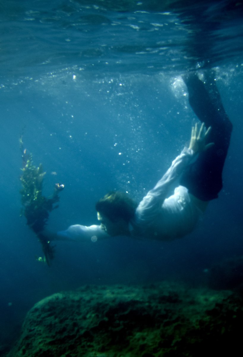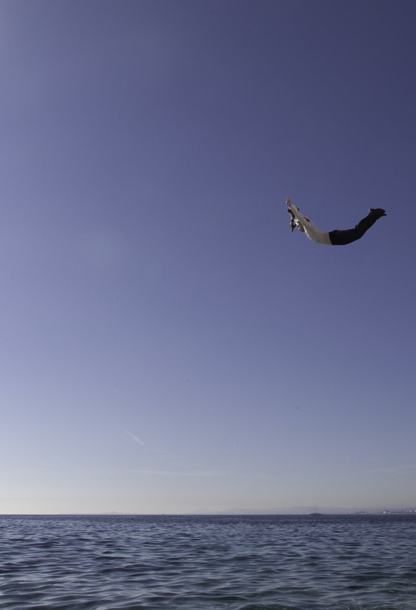 Un salto nel vuoto nel più semplice espediente, porgendo al mare un mazzo di fiori.