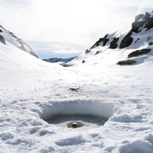 Une nouvelle fois les raquettes aux pieds, 15 kg d’or nordique sur le dos, nous repartions. Cette fois-ci, l’expédition est motivée par: Sous la glace, l’eau, une exposition en cours de production à la Caisse d’Épargne de Nice Masséna. Une exposition dans une banque? Etrange me direz-vous…