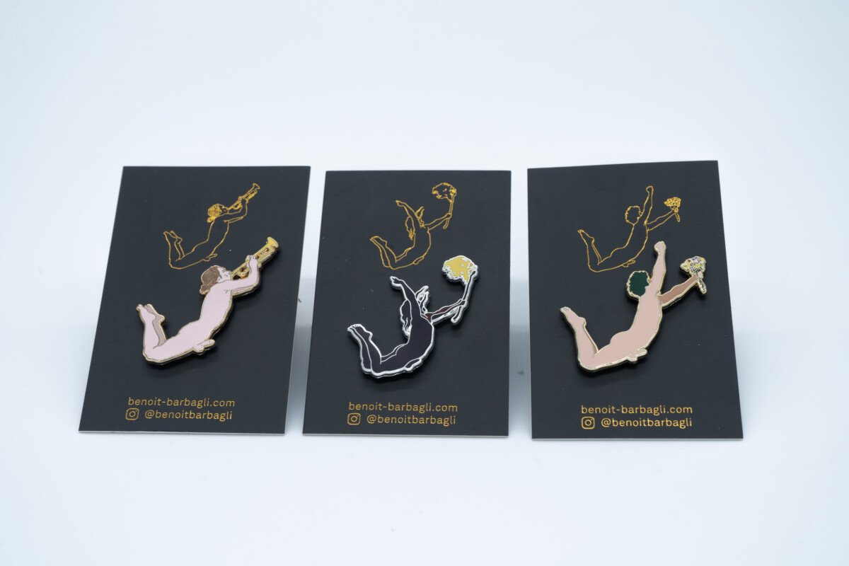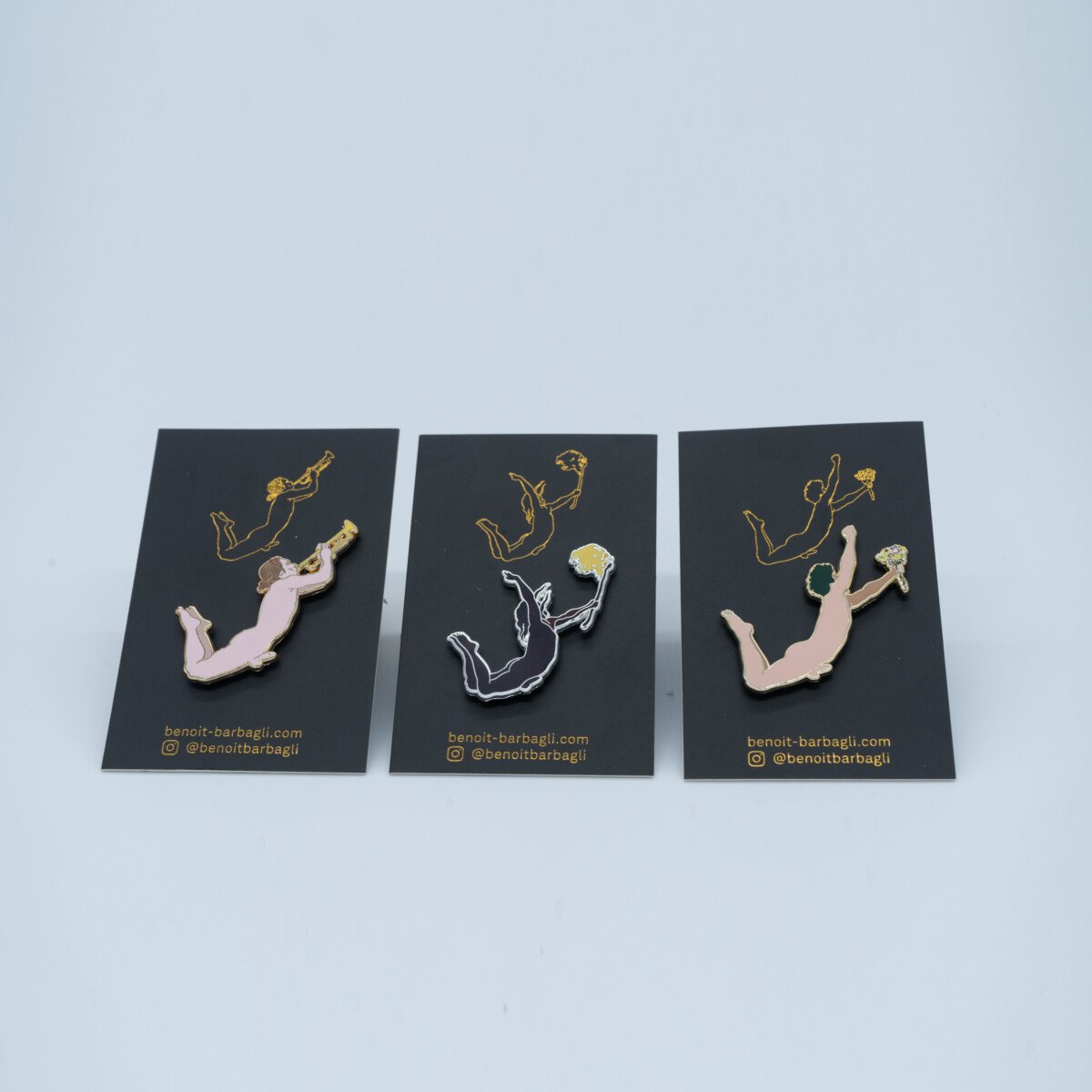 Benoit Barbagli Taille : 40mm Pin’s double attache Plaqué OR Si Bémol Amoureux – Tentative Amoureuses